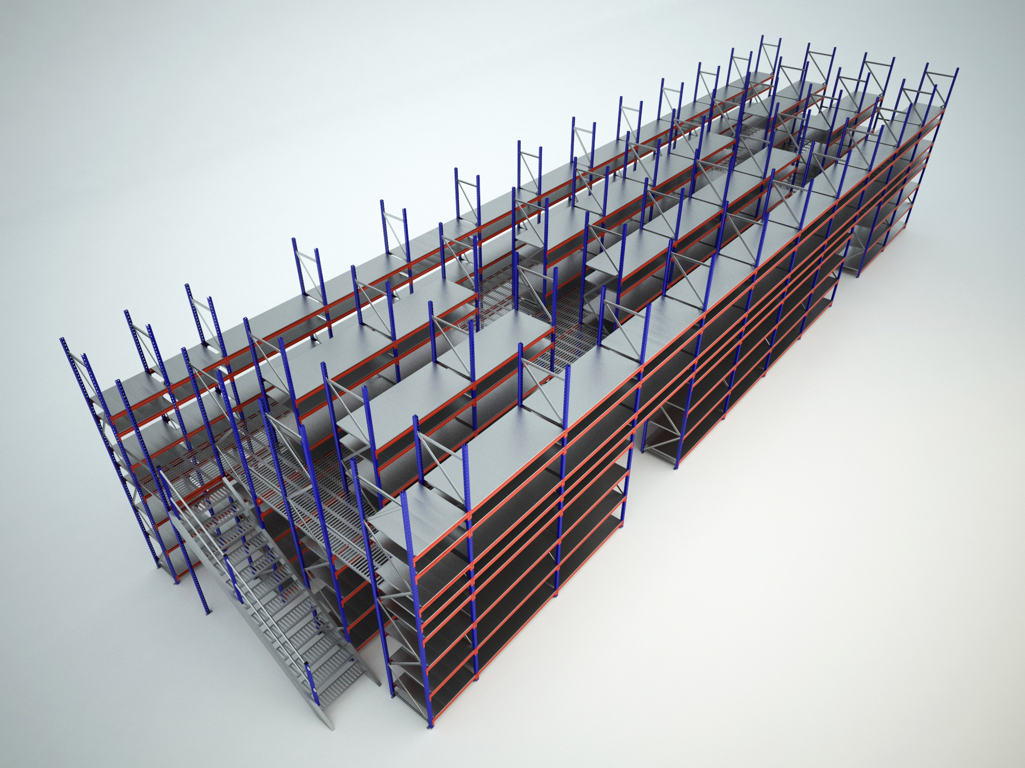 El diseño preferido por todos nosotros. La forma más eficiente de optimizar al máximo un almacén de carga manual para cargas medias o pesadas. Al diseñar un almacén de carga manual donde el recinto o instalaciones del cliente tienen altura suficiente, siempre ofrecemos la opción del pasillo elevado. Consiste en llevar las estanterías al máximo de altura posible para colocar pasillos a distintas alturas que nos permiten transitar entre las estanterías y poder acceder a ellas.